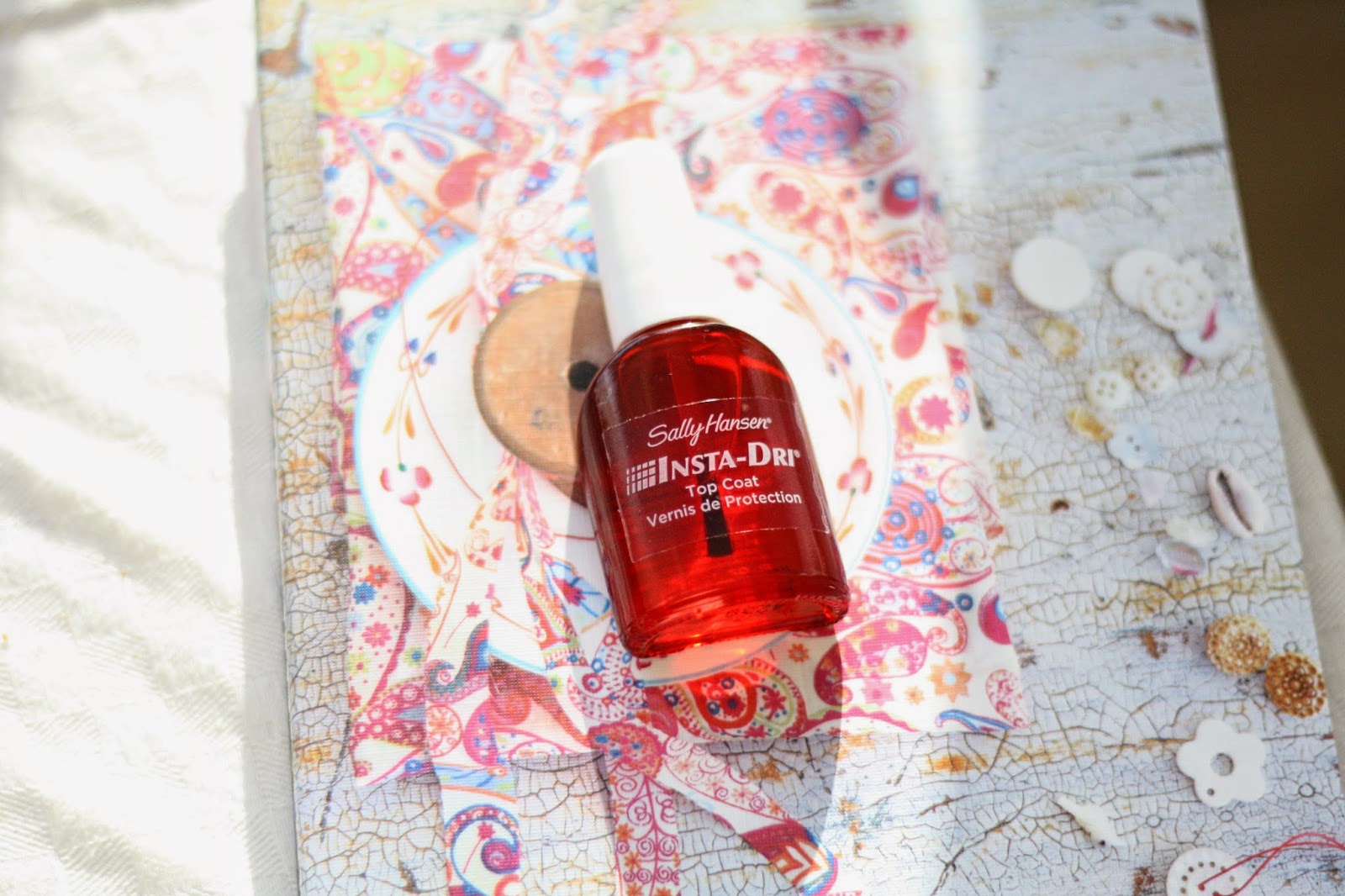 My Mum bought me a selection of mini nail varnishes for my birthday last year from nails inc. and the caviar top coat impressed me with it's drying speed and longevity. Now it is almost running out and I can't buy nails inc. products from any shops here so when I spotted Sally Hansen's Insta-Dry Top Coat on offer I decided to give it a try.